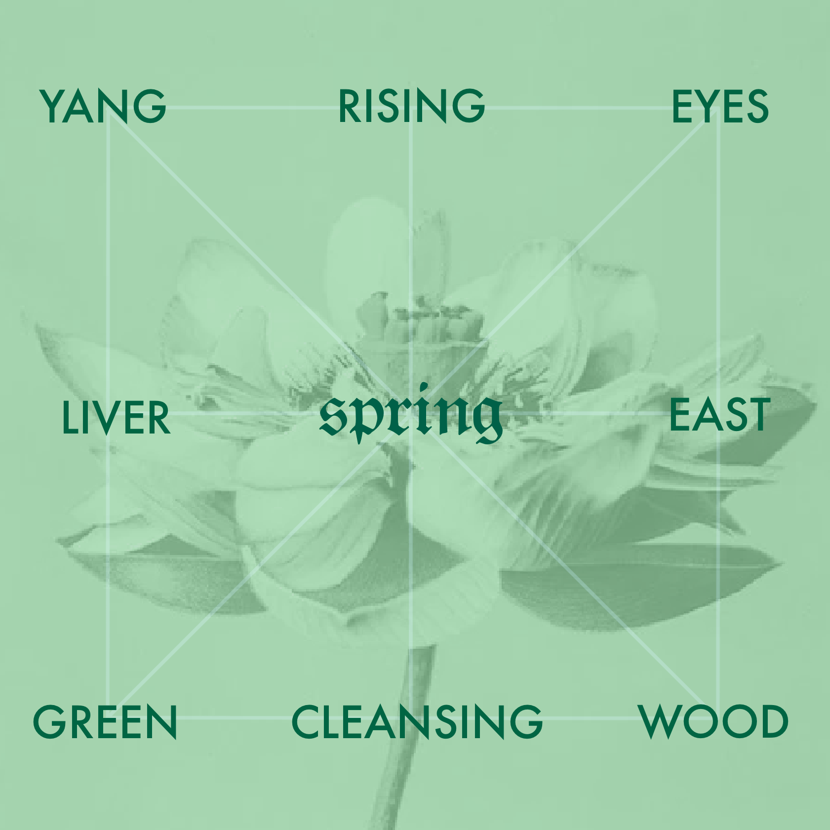 I love the visual of the water elementβs season (winter) giving way to the wood elementβs season (spring): water feeds the seed, the stem breaks through to seek the fire (summer) ahead.